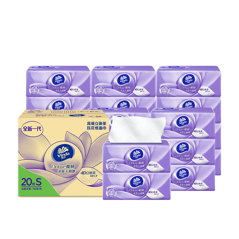 ¥17.4 【洁柔】立体压花绵柔感抽纸3层90抽20包 17.4
