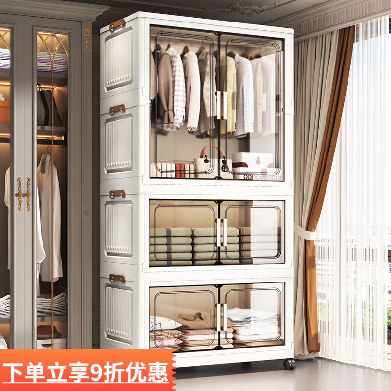¥57.12 柏帝奇儿童衣柜出租房用卧室简易经济型结实耐用收纳置物架多层衣橱家用 无帘款-大容量储物 十年质保-【加厚50长】 59.12