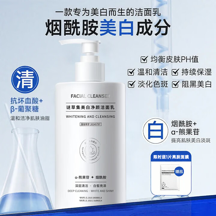¥39.9 谜草集洗面奶泡沫美白净颜洁面乳硫磺控油祛痘深层清洁保湿男女士通用 【持证美白】净颜洗面奶500g 49.9