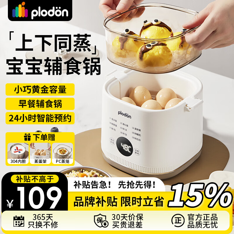 ¥39 浦利顿多功能辅食锅电蒸锅BB煲饭锅婴儿专用炖盅宝宝辅食锅辅食机 辅食锅(单层) 宝宝辅食料理 109