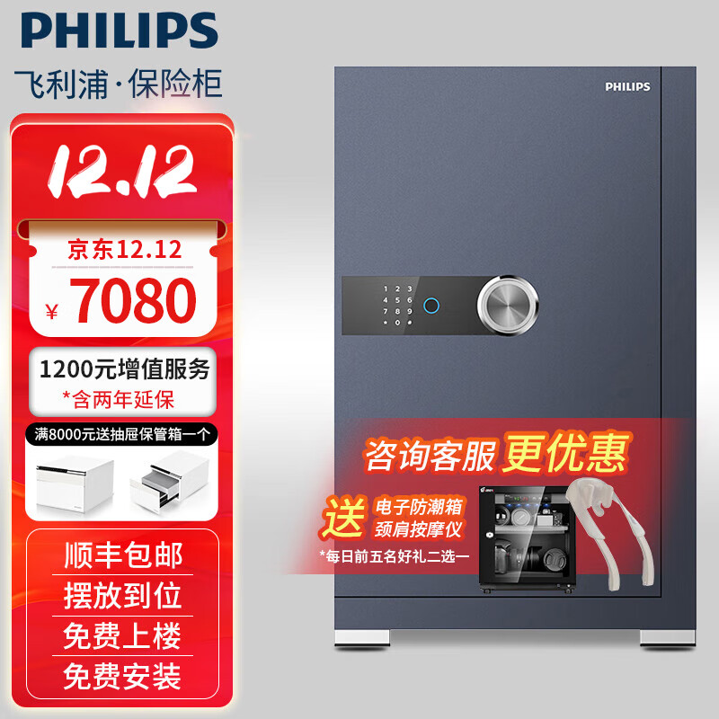 ¥9025 飞利浦保险柜202/201新款小型高端家用办公室入衣柜床头柜 指纹密码双识别机械伸缩手柄防搬走保险箱 暮色蓝 WiFi智联【高82.1厘米 重84公斤】 9725