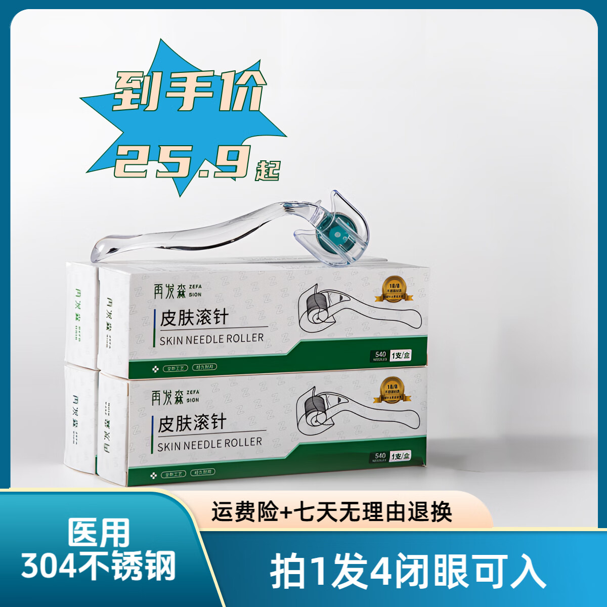 ¥25.9 再发森医用皮肤滚针家用便携式拍一发四头皮按摩水晶绿色滚针头皮导入仪 水晶滚针拍1发4(0.5mm) 28.9