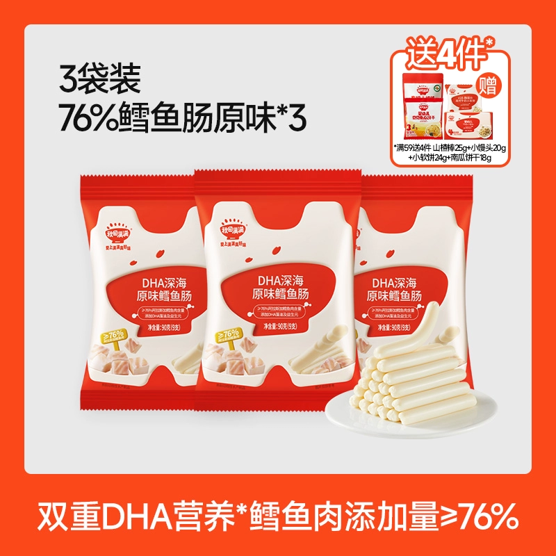 ¥19.5 秋田满满DHA深海原味鳕鱼肠90gX3袋 35.5