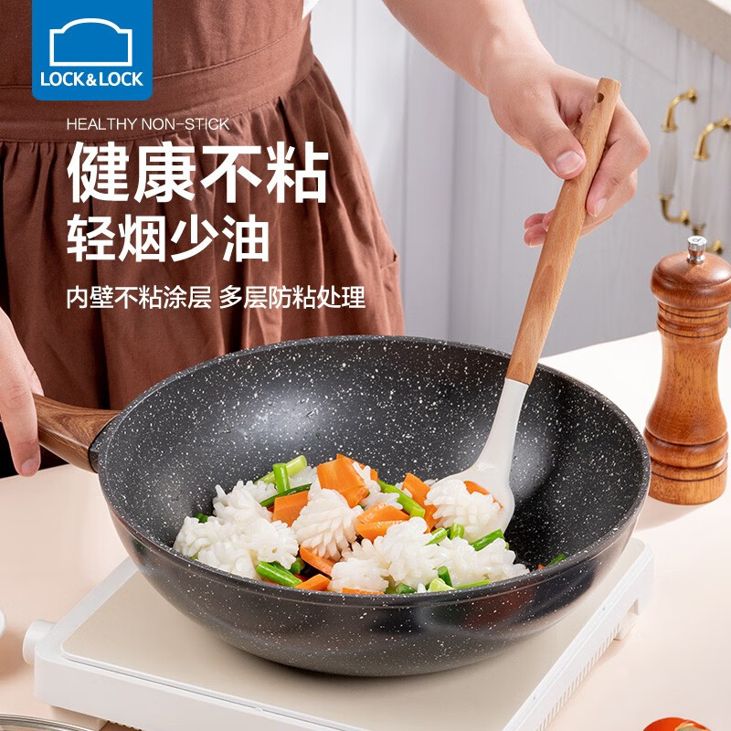 ¥143.1 乐扣乐扣不粘锅炒锅麦饭石色炒菜锅家用不沾锅电磁炉燃气通用 【带硅胶铲】 28cm 159