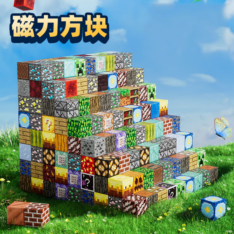 ¥21.9 新奇源我的磁力方块世界儿童玩具3-6-10岁迷你磁吸积木益智玩具男女孩 随机装【68颗粒赠4人仔】彩盒 24.9
