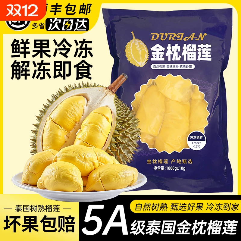 ¥59 泰国金枕榴莲A级新鲜冷冻1000g 59
