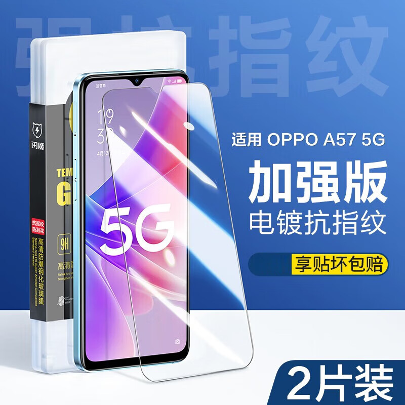 ¥35.9 闪魔【甄选】 适用于OPPO A57钢化膜5G版 防摔防爆防指纹高清手机玻璃贴膜 A57【加强版双倍抗指纹】2片装*无神器 贴坏包赔 65.9