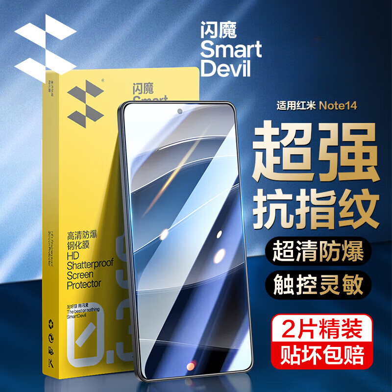 ¥37.9 闪魔【严选直发】适用红米note14pro钢化膜手机膜note14钢化膜 redmi红米note14pro+钢化膜高清防爆防 14【加强版|超清抗指纹钢化膜】2片 红米note14【贴坏包赔】 67.9