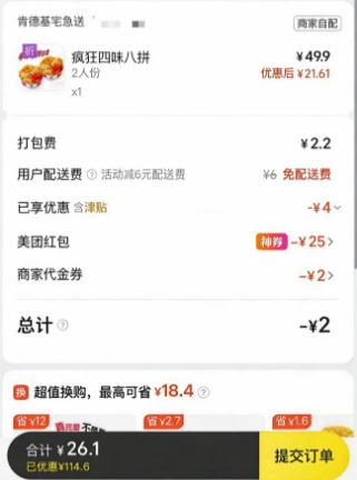 【美团】26元!肯德基 疯狂星期四 四味八拼