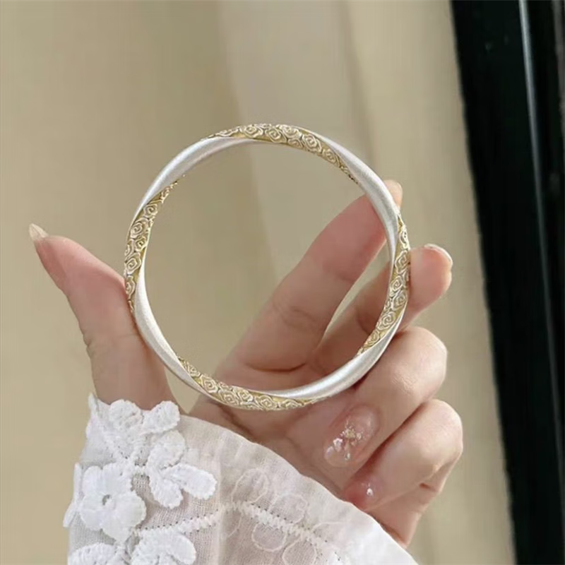 ¥108 开口纯银手镯女9999实心足银镯子送妈妈长辈老人母亲节礼物 繁花似锦25 138