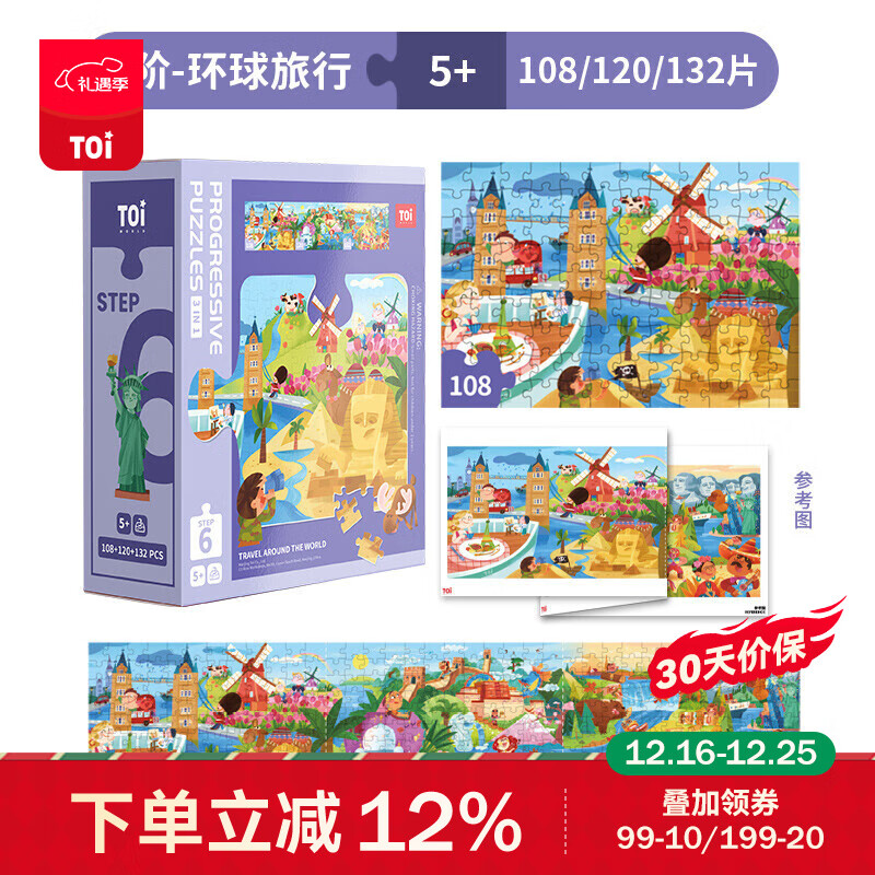 ¥34.8 TOI儿童特供拼图3-6岁进阶拼图早教玩具男孩女孩生日礼物 6阶-环球旅行(适合5岁+3盒) 69.8