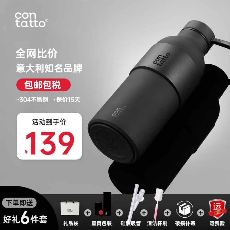 ¥112 吉姆蓝杰contatto吉姆蓝杰车载运动不锈钢保温杯男士户外杯子男生颜值水杯 极简黑500ml可定制 122