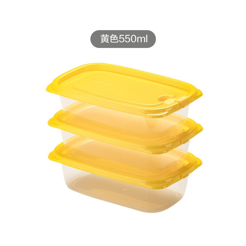¥19.8 茶花(CHAHUA)塑料冰箱保鲜盒家用冷冻水果蔬菜专用收纳盒食品级冰箱收纳盒 黄色3个装-550ML长方形 49.8