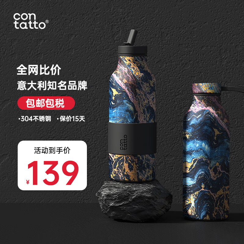 ¥112 吉姆蓝杰contatto潮流保温杯不锈钢户外颜值水壶男生随行水杯男士运动杯子 斑斓之梦500ml可定制 122