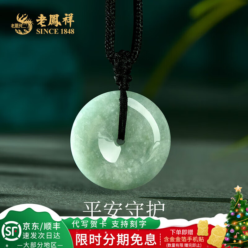 ¥119 老凤祥平安扣翡翠吊坠玉坠项链男女同款送对象女友老婆圣诞节生日礼物 平安扣尺寸约24-25cm 139
