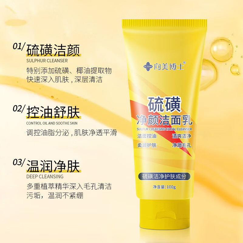 ¥13.9 硫磺洗面奶深层清洁保湿男女士专用洁面乳现货 硫磺洗面奶 100g 43.9