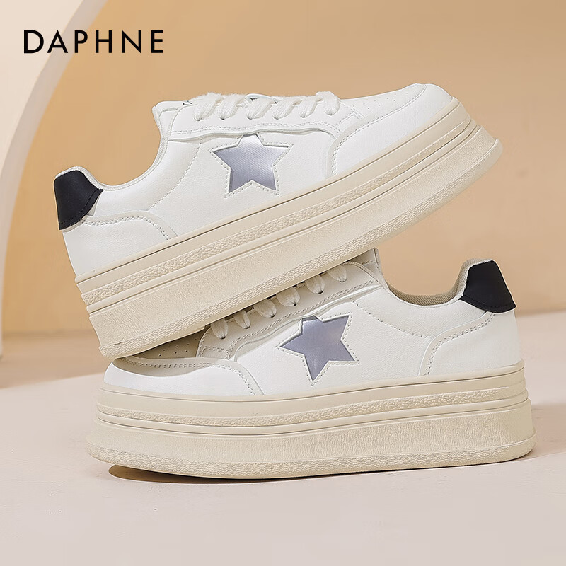 ¥89.9 达芙妮星星小白鞋女2025秋季新款休闲ins厚底增高板鞋韩版百搭女鞋QJ1 白银色 40 239.9