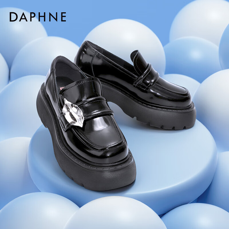 ¥99.9 达芙妮【方糖系列】真皮厚底小皮鞋女2025春季限量版女鞋单鞋子女QJ1 黑色 37 249.9