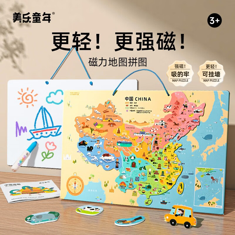¥59.9 美乐童年中国地图拼图强磁超轻便携儿童早教玩具地理男女孩学习磁力拼图 【超轻强磁】中国地图拼图 79.9