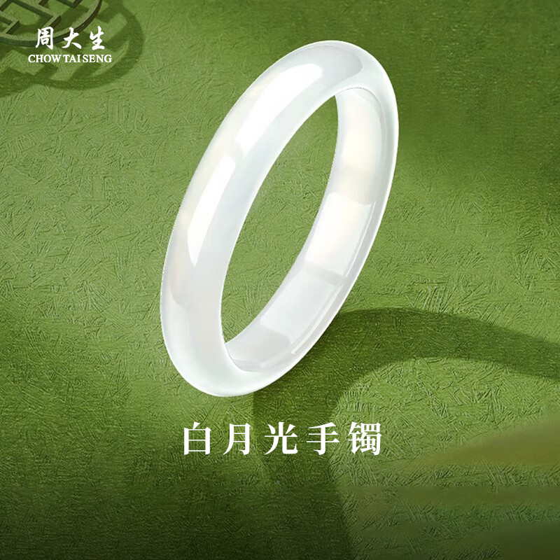 ¥238 周大生玉髓白月光手镯冰种宽条荔枝冻玉手镯送妈妈女友圣诞礼物 白月光手镯 宽版 55-56#【其他圈口需备注或联系客服】 338