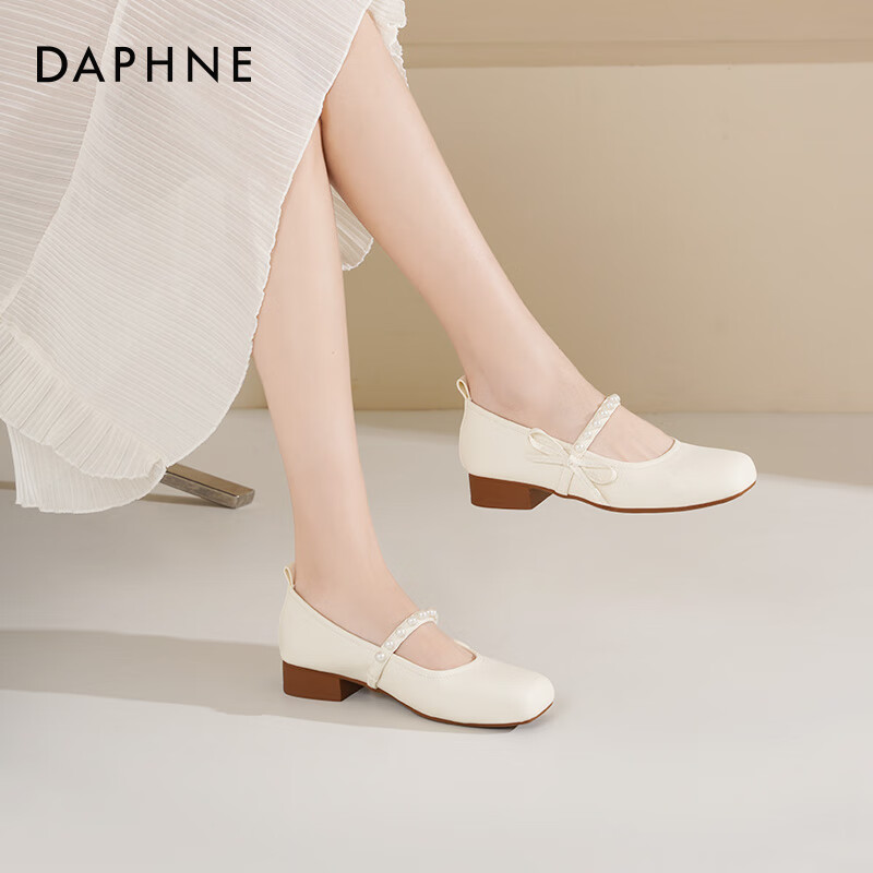 ¥89.9 达芙妮粗跟玛丽珍单鞋女2025春季新款小皮鞋温柔软底晚晚鞋软底女鞋JL 米白色 37 239.9