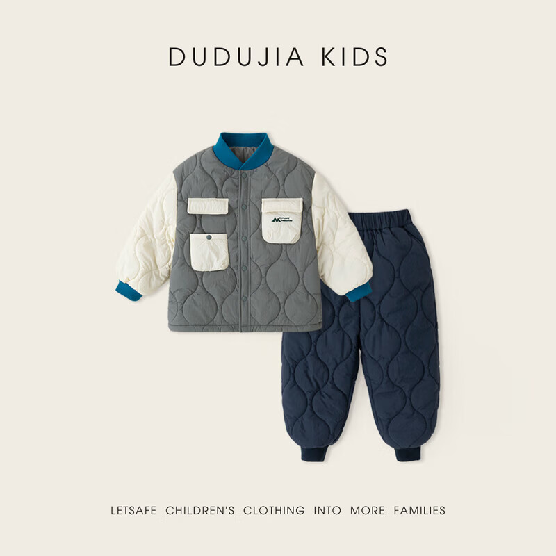 ¥259.3 嘟嘟家男童冬装棉服套装儿童保暖棉衣裤子女童加厚上衣裤宝宝冬季两件套 灰色 90 259.8