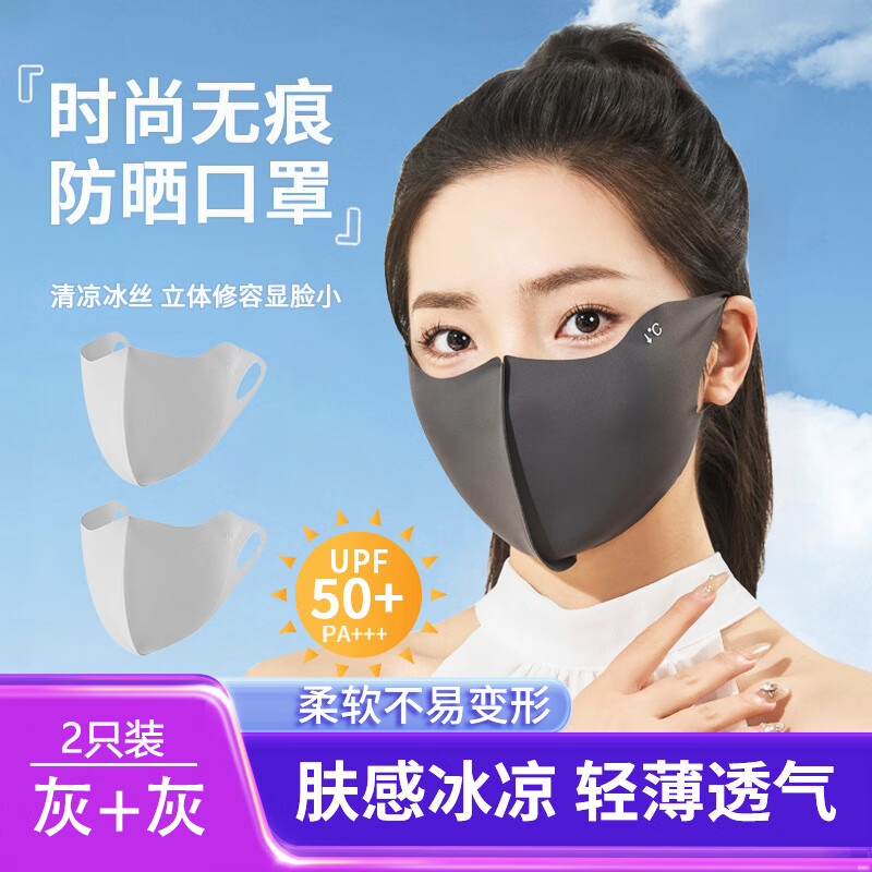 ¥9.9 防晒冰丝口罩男女骑行面罩冰丝一片式无痕护眼角防紫外线户外遮阳 【灰色2只装】2025新款无痕冰丝口罩 19.9