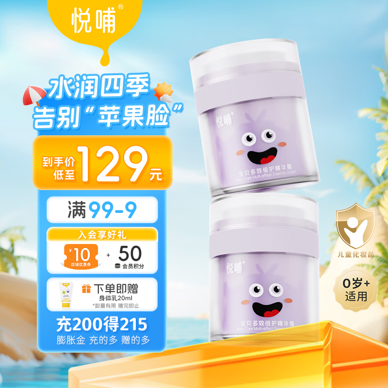 ¥128 悦哺儿童滋润面霜 婴儿保湿润肤霜宝宝干燥肌补水舒缓 新生儿可用 【囤货】宝宝面霜50g*2瓶 138