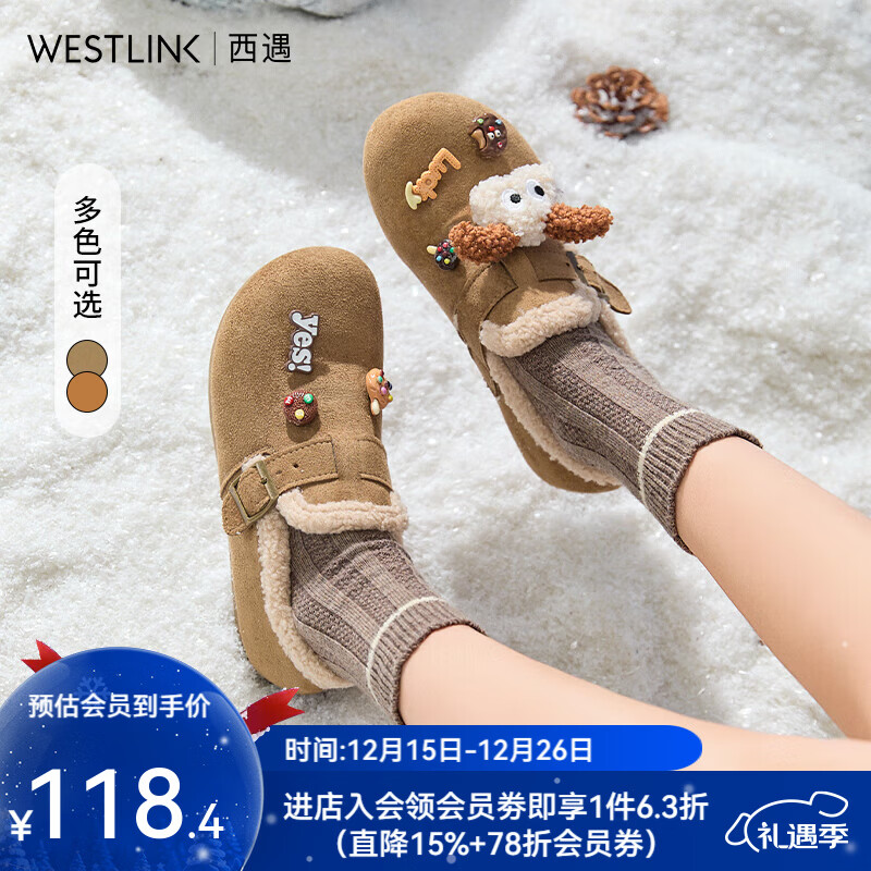 ¥163.02 西遇(Westlink)厚底加绒勃肯鞋女冬季新款一脚蹬包头半拖鞋外穿毛毛棉拖 卡色 38 (240) 209