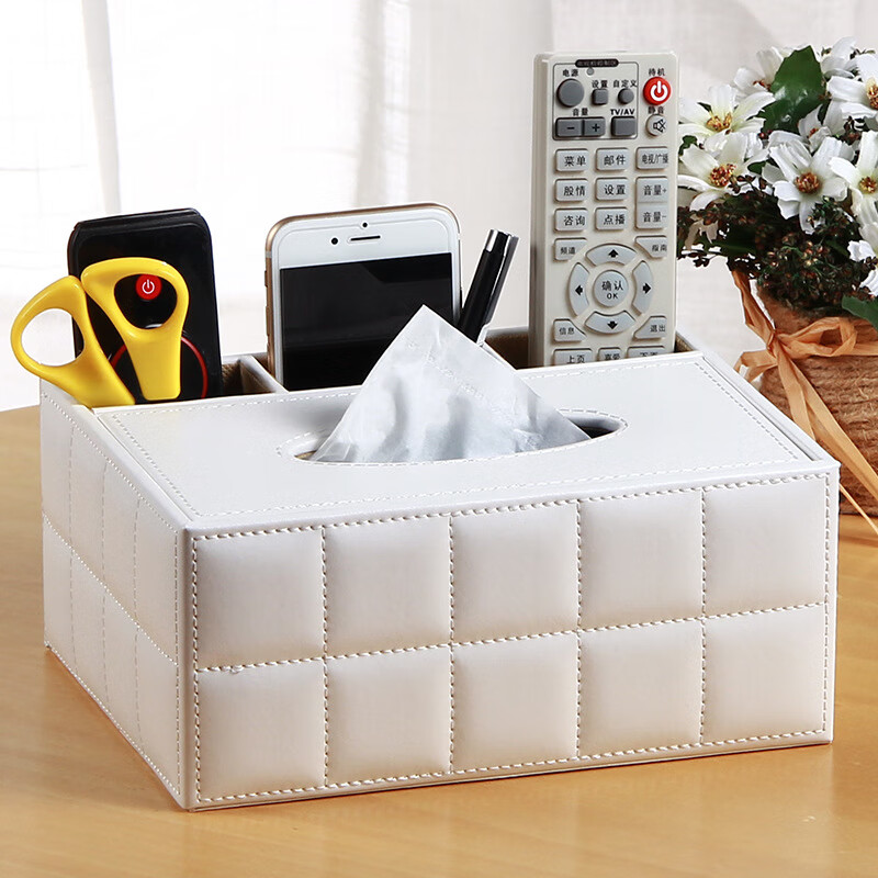 ¥40.9 【直发】多功能收纳纸巾盒家用遥控器收纳盒创意纸抽盒客厅餐厅 方形白格纸巾盒 23.5*16.5*9.5cm 70.9