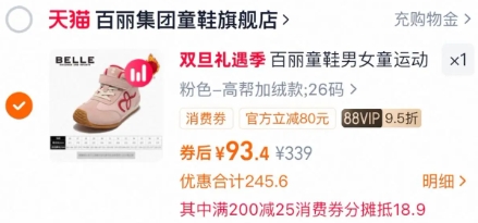 在售价339元,领90元券+42.25元礼金,商品页右上角三个点点进去-底部淘金币点进去-淘金币 我的足迹页拍,叠淘金币,叠凑单一起,折主商品93元;