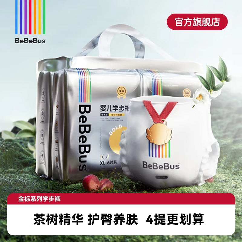 ¥146 bebebus【金标】茶树精华超薄透气学步裤拉拉裤男女宝宝尿不湿 3XL 40片 【箱装】(17-20KG) 236