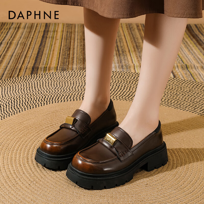 ¥99.9 达芙妮乐福鞋女2025秋季新款复古棕色单鞋百搭厚底英伦风小皮鞋女JL 棕色 38 249.9