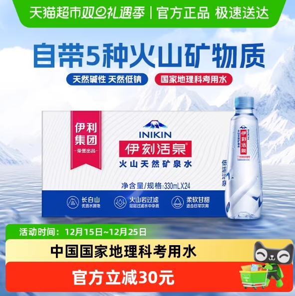 13元!伊利 活泉火山矿泉水330ml*24瓶