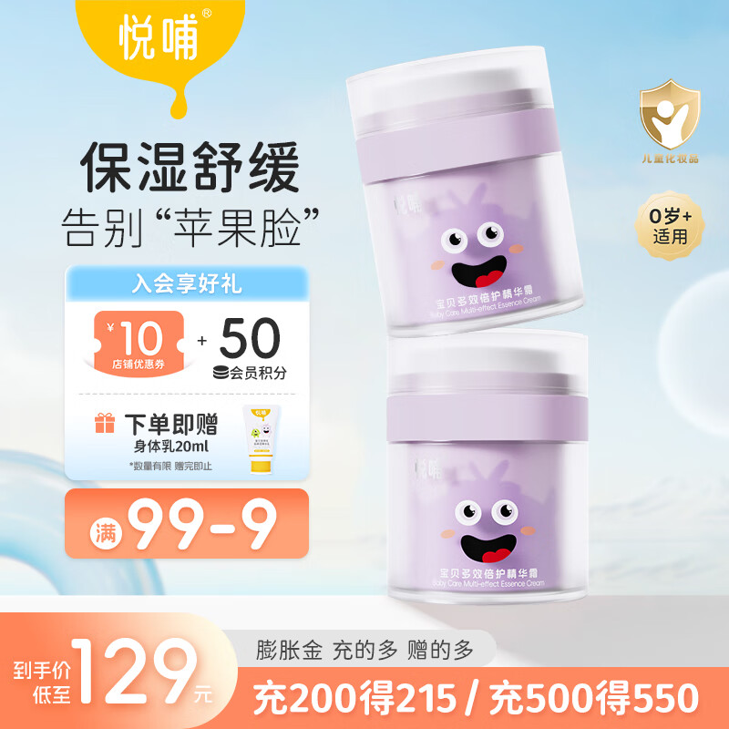 ¥128 悦哺婴儿面霜 儿童干燥肌舒缓滋润霜 宝宝补水保湿润肤护肤霜 【超值囤货】面霜 50g*2瓶 138