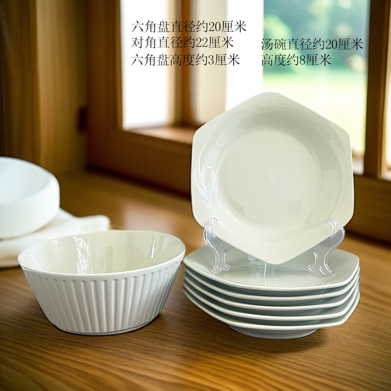 ¥19.9 想迦月如烟系列陶瓷餐具2025新款高颜值餐具陶瓷碗盘釉下彩乔迁送礼 奶油风7件套装 29.9