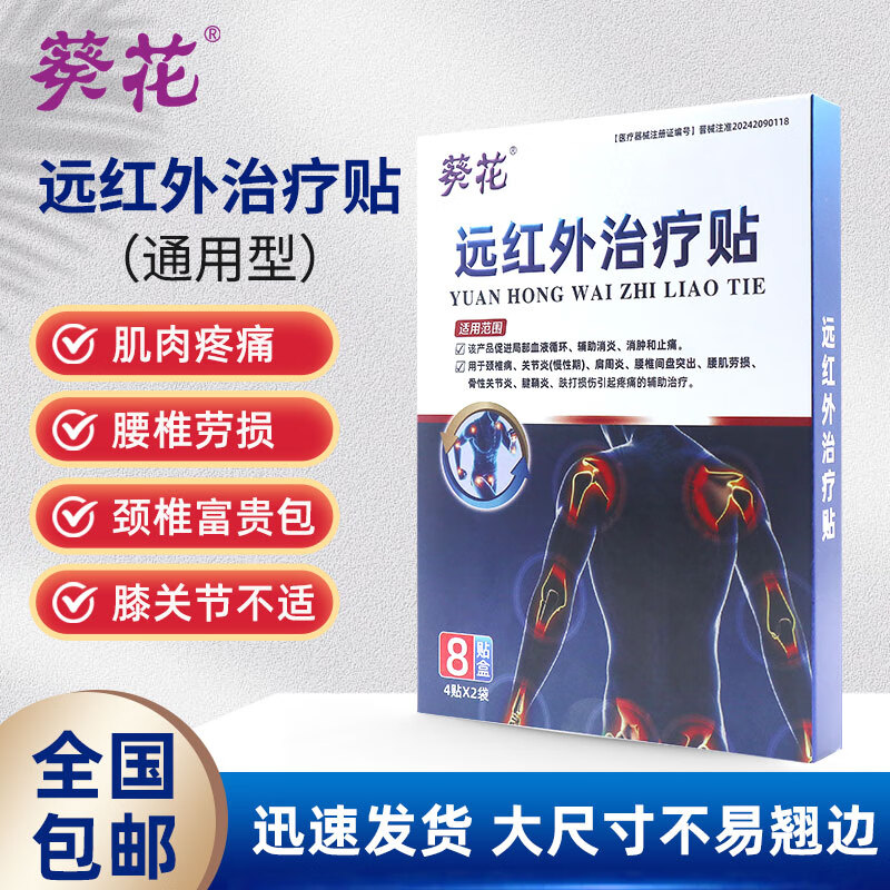 ¥18.8 葵花远红外治疗贴通用型颈椎关节疼痛酸胀僵硬劳损二类器械治疗膏药贴 3盒【24贴8x12cm-周期疗程推荐】 79.8