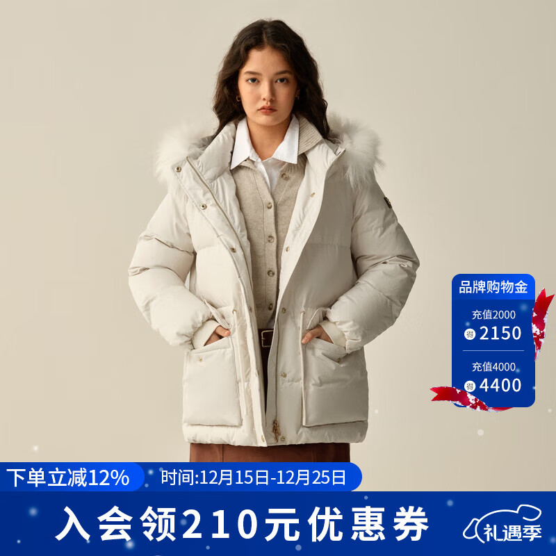 ¥2328.15 ELAND衣恋羽绒服女时尚毛领长袖大口袋保暖外套2025冬季新款 象牙白/白色(39)Ivory S /160 2739