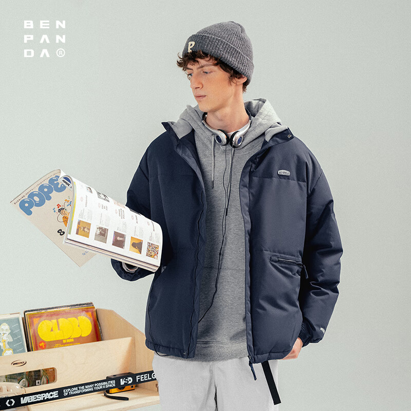 ¥250.74 熊猫·本(ben.panda)日系百搭秋冬保暖连帽羽绒服工装加厚休闲外套情侣 黑蓝色 XL 398