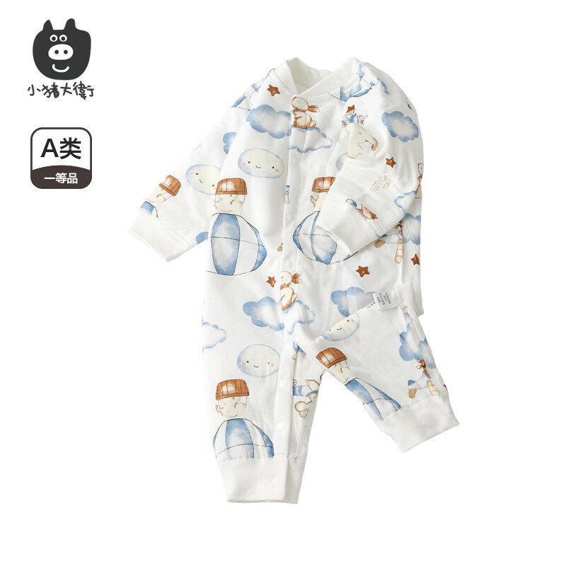 ¥29.9 小猪大卫 PECODAVID新生儿秋冬夹棉连体衣男女宝宝卡通印花中开保暖爬服 飞行日记【40克】 80cm 59.9