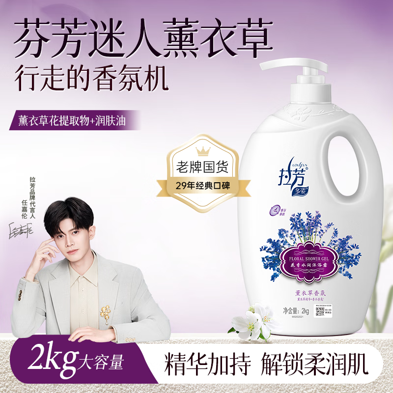 ¥29.9 拉芳 多姿花香水润沐浴露大容量滋润保湿芳香沐浴乳男女 【大容量】薰衣草香氛沐浴露2kg 39.9