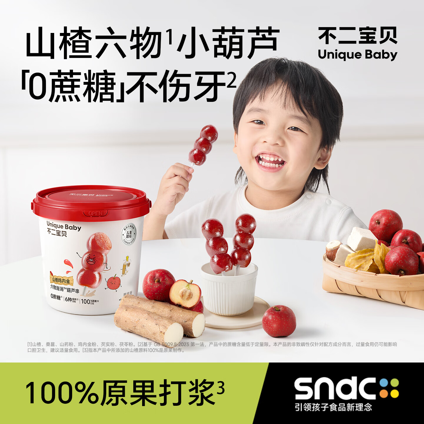 ¥20.9 不二宝贝山楂棒棒糖小葫芦水果条搭婴儿幼儿童无添加无蔗糖宝宝零食 【1桶18支 | 山楂鸡内金】山楂葫芦串234g 23.9