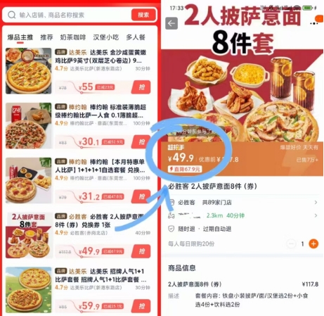 49.9元!必胜客2人披萨意面8件套