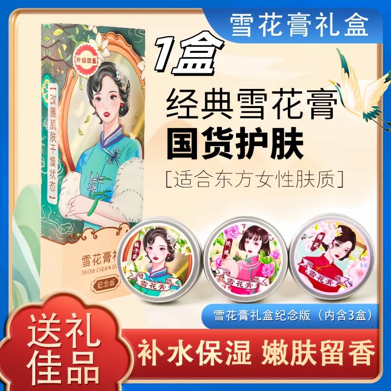¥9.9 米卡博雪花膏正品国货老牌护手霜面霜特产伴手礼物 80g*3罐舒适肌肤水润细腻【1盒3罐】 无规格 19.9