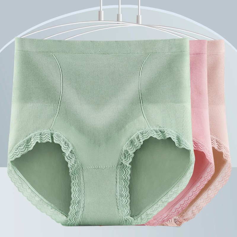 ¥19.9 康丽霞(3条)女士内裤女高腰蕾丝边石墨烯抑菌底裆收腹提臀透气三角裤 绿色+藕粉+肤色 XL 69.9