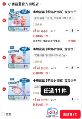 小鹿蓝蓝零食专区,20任选11件