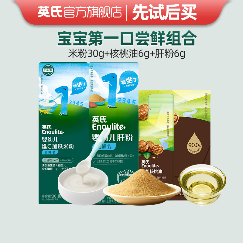 ¥32.6 英氏米粉婴儿高铁独立小包装宝宝米粉荤素果蔬6-12个月米糊婴儿细腻 【1阶6月+】维C加铁便携 135g*1盒 34.5