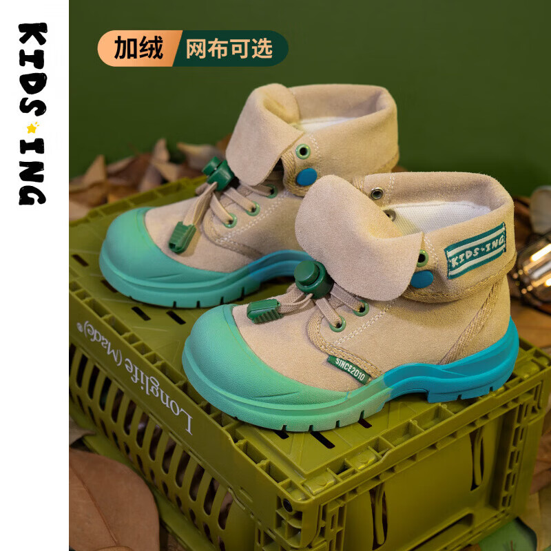 ¥99 kids.ing【秒杀捡漏】可迪星女童马丁靴秋冬女童短靴中大童单靴女孩靴子 灰色旅行家 34 适合脚长20.6-21.2cm 159
