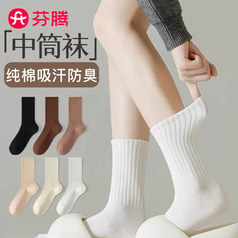 ¥14.9 96%新疆棉!芬腾美拉德长筒袜5双 39.9