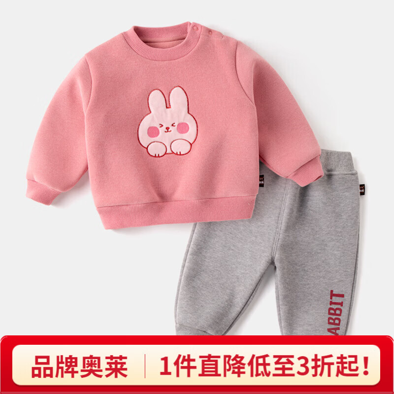 ¥129 嘟嘟家儿童卫衣套装冬装男童翻领上衣裤子两件套女童休闲裤童装保暖衣服 粉色兔子加厚款 90 151.8